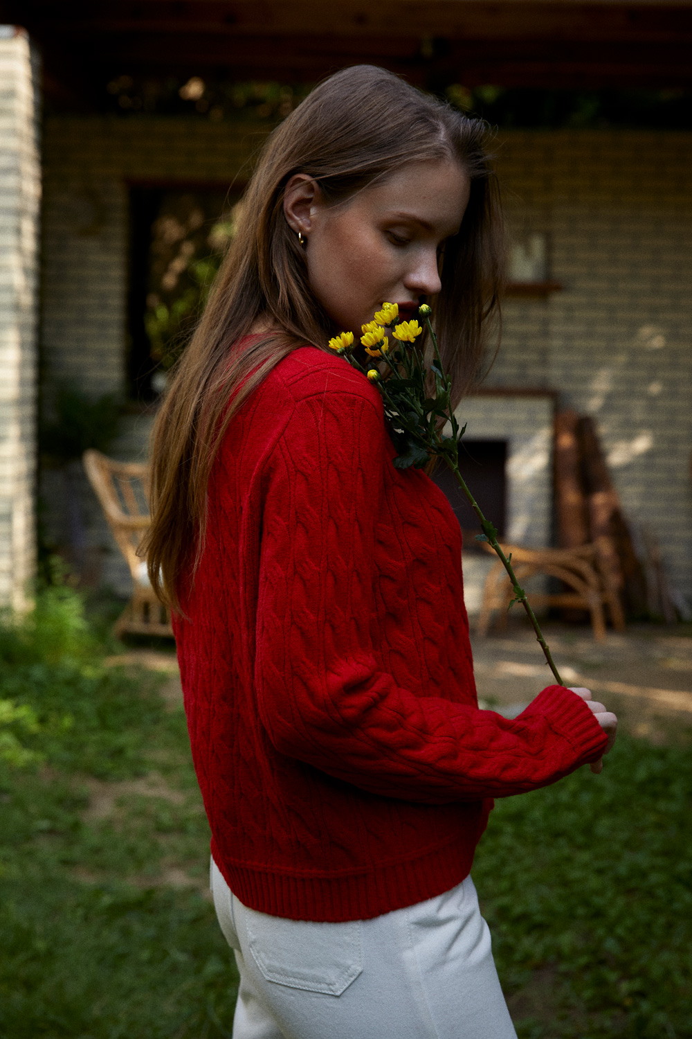 규칙적인 케이블 짜임과 볼드한 버튼으로